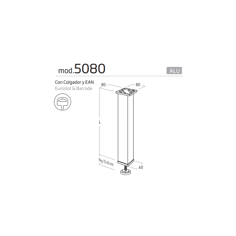 Pata De Mesa De 710 X 60 Mm - Aluminio - Modelo 50807alm