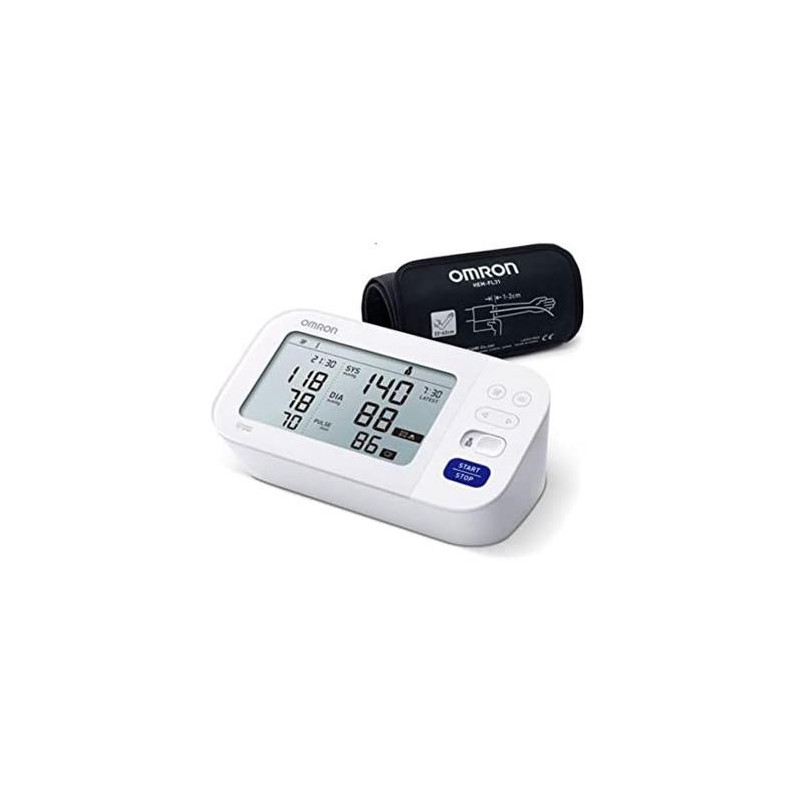 Omron M6 Comfort Medidor automático de la presión del brazo dispone de la pulsera Intelli Wrap, la manera más sencilla de obtener resultados precisos. Este dispositivo detecta la posible presencia de fibrilación atrial.