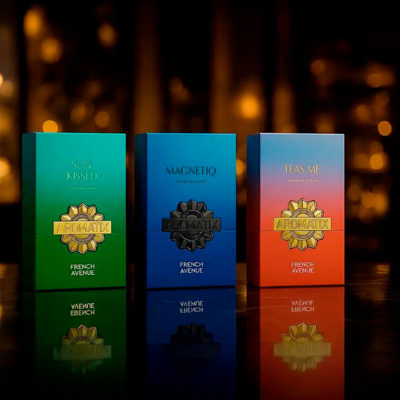 Sun Kissed de Aromatix by French Avenue es una fragancia unisex que captura la sensación de un día bañado por el sol: luminosa, fresca y sofisticada. Su composición abre con un estallido cítrico vibrante que aporta energía inmediata, evolucionando hacia un corazón aromático y ligeramente gourmand que sorprende por su originalidad