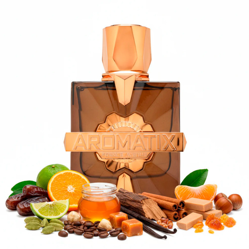 Naughty Dates de Aromatix by French Avenue es una fragancia unisex lanzada en 2025 que combina a la perfección frescura, dulzura y profundidad. Su apertura destaca por un contraste vibrante entre notas cítricas y especiadas que aportan ligereza y energía, dando paso a un corazón intensamente gourmand donde el protagonismo lo tienen los dátiles, el café y la miel.