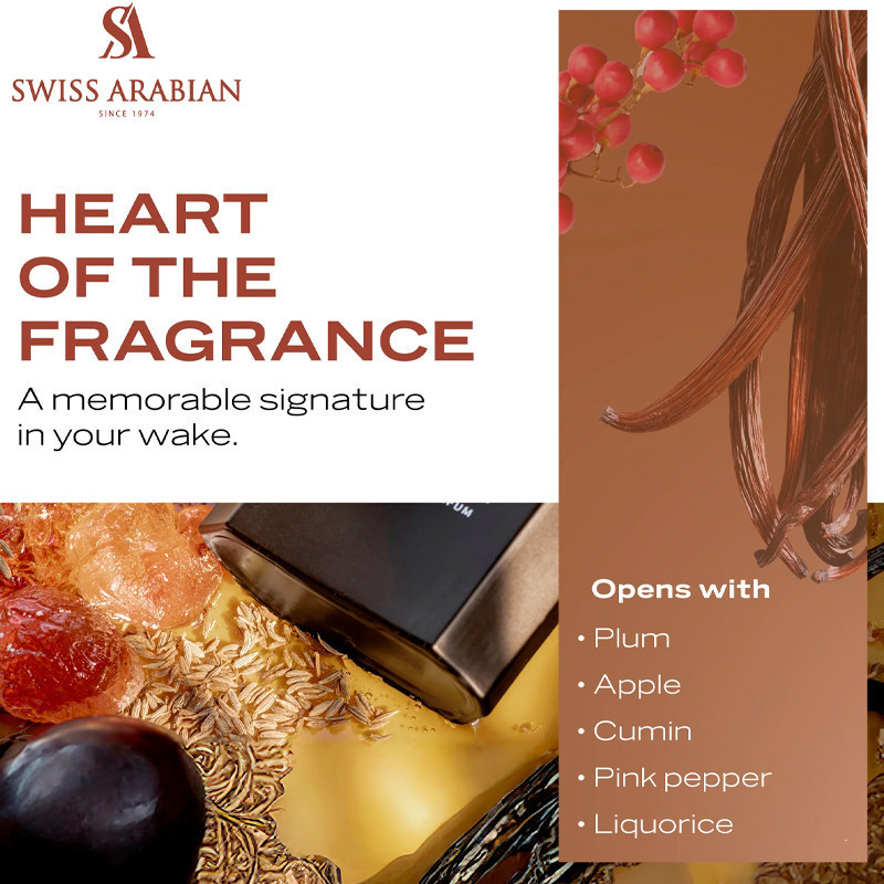 Tobacco 01 de Swiss Arabian es el primer perfume de la Colección Heritage y se presenta en una concentración alta (Extrait De Parfum). Esta fragancia es una reinterpretación sofisticada del tabaco, transformándolo en un aroma más dulce, lujoso y envolvente.