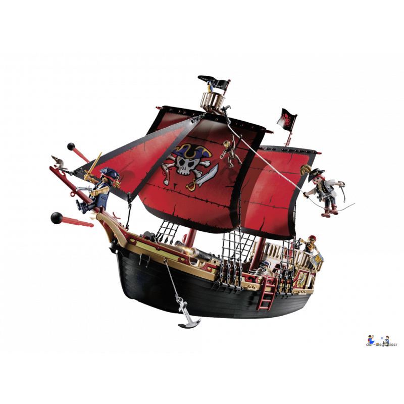 Con tres piratas y muchos accesorios. Accede al interior del barco desde la abertura en el centro.