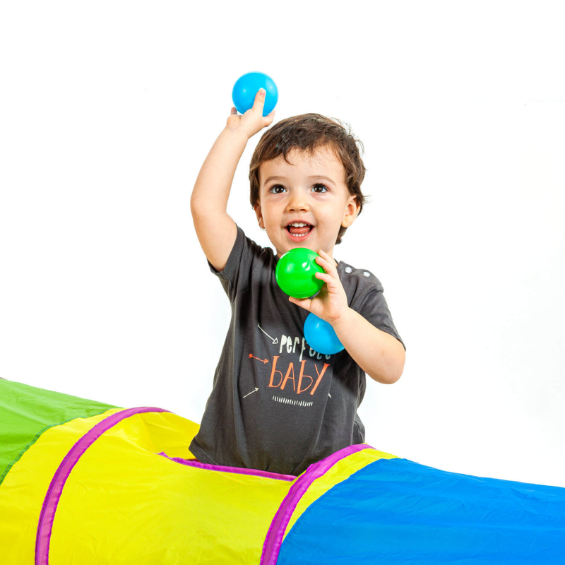 Tunel plegable para casa con 25 pelotas de piscina incluidas de diferentes colores, resistentes y flexibles, volviendo a su forma si las aplastan. Estructura diseñada especialmente para el entretenimiento y la diversión de los más pequeños. Construido con materiales seguros y duraderos, como tela resistente y plástico de alta calidad, que es suave al tacto y no presenta bordes afilados ni piezas pequeñas que puedan representar un peligro para los niños. Su forma permite niños gatear o arrastrarse a través de él. El túnel es lo suficientemente amplio para que los niños puedan moverse cómodamente, pero lo suficientemente estrecho como para que sea un desafío divertido. En el interior del túnel, se encuentran pelotas de plástico multicolores y livianas, de diferentes tamaños y texturas. Estas pelotas llenan el túnel y crean una experiencia sensorial y lúdica para los niños mientras se desplazan a través de él. Los colores brillantes y llamativos de las pelotas estimulan la imaginación y la creatividad de los niños. El túnel tiene una ventana para que los niños puedan asomarse o interactuar con otros niños dentro y fuera del túnel. Este túnel es una excelente manera de fomentar la actividad física, el juego cooperativo y la exploración en los niños, al tiempo que brinda horas de diversión y entretenimiento en un entorno seguro y controlado. Medidas: LARGO: 180.00 cm ANCHO: 46.00 cm ALTO: 46.00 cm Edad recomendada: + 12 meses