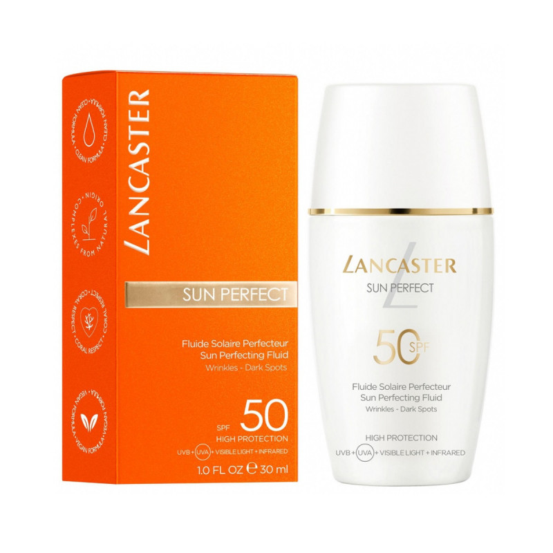 Lancaster Sun Perfecting Fluid SPF50 es un protector solar facial que cuenta con una fórmula rica en activos con alto poder antiarrugas y antimanchas.