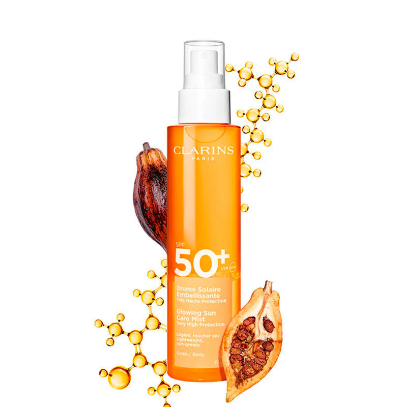 Esta bruma solar bifásica evita visiblemente el envejecimiento prematuro y cuida todo tipo de pieles.