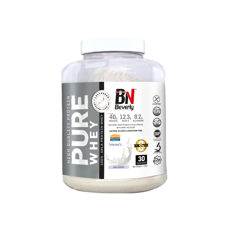 Pure Whey es la nueva proteína limpia de Beverly Nutrition con una gran versatilidad, es ideal para consumir antes o después del ejercicio y durante el día entre las comidas principales. Está elaborada al 100% proteína pura de la prestigiosa compañía ARLA, líder mundial en fabricación de proteínas lácteas.