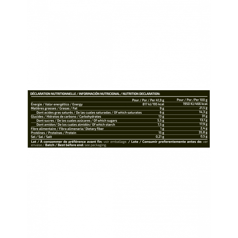 Cada bolsa contiene 2 wafers, proporcionando 15 g de proteína en cada una de ellas, de esta forma, se consigue un snack individual perfecto, consiguiendo un aporte de proteínas de forma fácil y deliciosa.