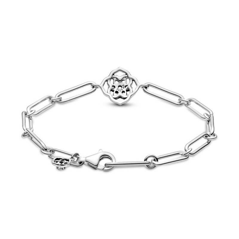 Pulsera Eslabones Pétalos de Rosa Pandora en plata de primera ley adornada con circonitas cúbicas transparentes