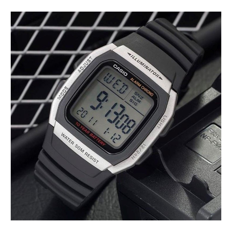 CASIO W-96H-1A Reloj Digital Hombre Deportivo Negro y Plateado Wr 50M Batería 10 Años Luz Led