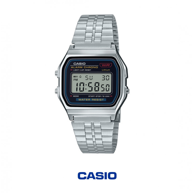 CASIO A159WA-N1 Reloj Digital Unisex - Esfera Negra - Correa de Acero Inoxidable