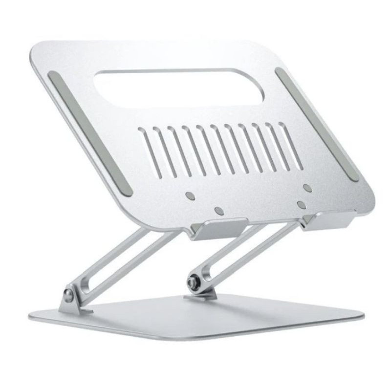 Especificaciones Soporte de sobremesa ajustable de tamaño XL para portátil o Tablet 10?-17?. Este soporte mejorado cuenta con un cuerpo de aleación de aluminio refinado que garantiza la máxima durabilidad y estabilidad. Este soporte es totalmente plegable y compacto. Se puede guardar fácilmente en una mochila o maleta cuando viaja y ahorra espacio. Ofrece un ángulo de visión perfecto para vídeo conferencia, ver vídeos etc. Puede colocarlo en su escritorio, mesita de noche y mesa de trabajo en casa o en la oficina. Las patas de silicona antideslizantes protegen su dispositivo de posibles arañazos y deslizamientos, y las almohadillas antideslizantes inferiores evitan que el soporte se deslice en la mayoría de las superficies resbaladizas. Fabricado con una resistente aleación de aluminio, la parte superior puede soportar un peso máximo de 3 kg Este soporte es compatible con todos los portátiles / tablet de 10-17 pulgadas. El diseño propone una gran disipación de calor y un flujo de aire natural para evitar que su portátil se sobrecaliente. Color: Plata Contenido 1 x Soporte de sobremesa XL plegable y ajustable para portátil o Tablet