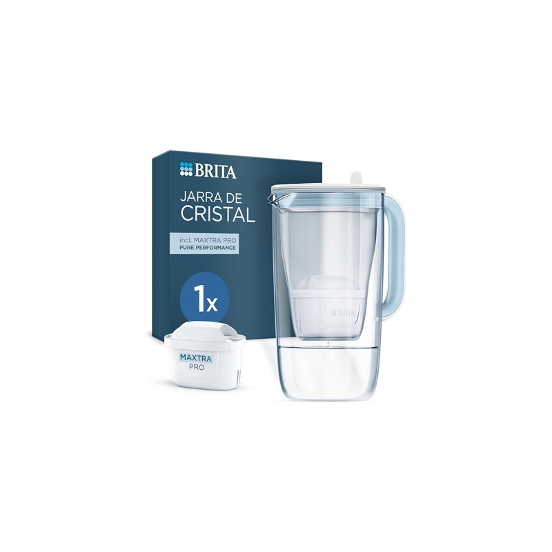 Incluye: 1x jarra de cristal BRITA (2,5 L) en color azul, 1x cartucho de filtro MAXTRA PRO ALL-IN-1.