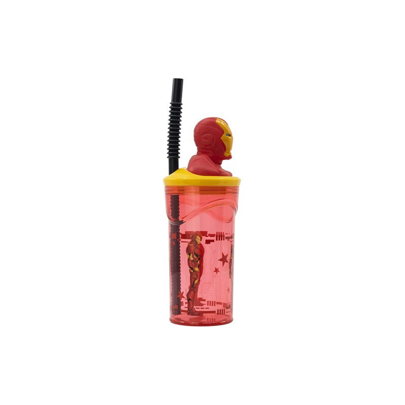 Stor Vaso Infantil Reutilizable con Pajita y Tapa con figurita 3D y Capacidad de 360 ml de Los Vengadores - Marvel - Iron Man