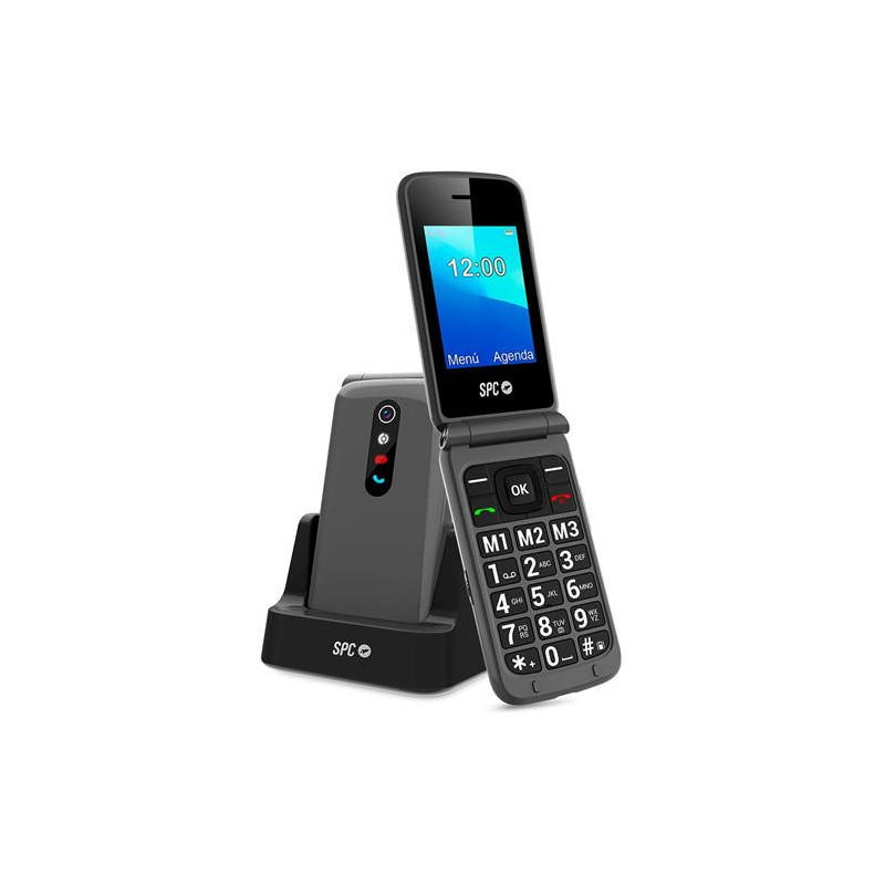 SPC Stella 2 - Teléfono móvil de Tapa para Mayores, Botones y Teclas Grandes, fácil de Usar, configuración remota, botón SOS, USB-C, 3 memorias directas, Base de Carga, Color Negro