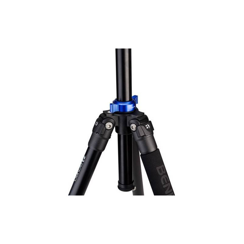 se suministra con doble columna central, una larga para conseguir la máxima altura y otra columna corta transportable en un compartimento de la bolsa que resulta ideal para tomas bajas, ya que permite bajar el trípode casi a ras de suelo en una altura de 41 cms.