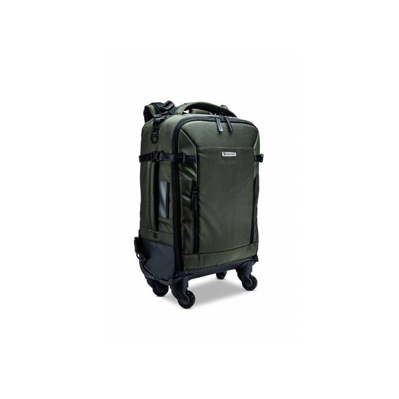 El trolley mochila VEO SELECT 55BT permite esconder el arnés y utilizar la opción de 4 ruedas giratorias. Gracias al estilo discreto de la VEO SELECT 55BT, nadie adivinará que hay un capacidad para 2 cámaras DSLR o cámaras sin espejo, CSC o híbridas de 4-5 objetivos, una unidad de flash y múltiples accesorios. Alternativamente, puede caber un pequeño dron o un equipo de vídeo.