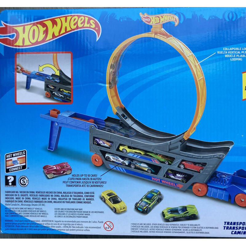 Hot Wheels Camión de Transporte Superacrobacias + 1 coche Hot Wheels ¡Lleva la emoción de tus coches favoritos a todas partes! ¡Gracias a este genial Camión de Transporte Superacrobacias de Hot Wheels! Consigue este increíble playset con el que podrás transportar tus Hot Wheels preferidos a un lugar amplio donde dejar a todos con la boca abierta gracias a las acrobacias más alucinantes. Monta el gran looping e impulsa tus Hot Wheels para que la propulsión sea la adecuada y la acrobacia se finalice con éxito. Aumenta las opciones de juego con el resto de vehículos Hot Wheels de tu colección personale y consigue muchos más en nuestra web. Siente la emoción de los coches en miniatura más brutales y sorprendentes, siente la magia de los Hot Wheels.