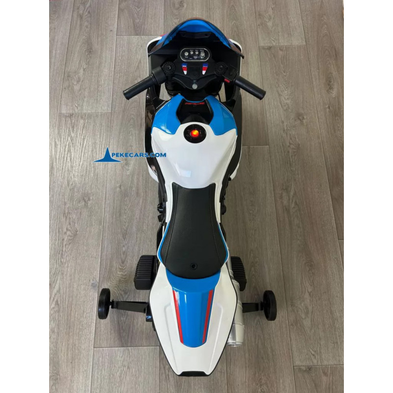 Impresionante moto BMW de carretera con un aspecto deportivo .Esta moto viene totalmente equipada con dos potentes motores 12V. Asiento forrado en poli-piel y ruedas de caucho para una circulación más silenciosa y suave.
