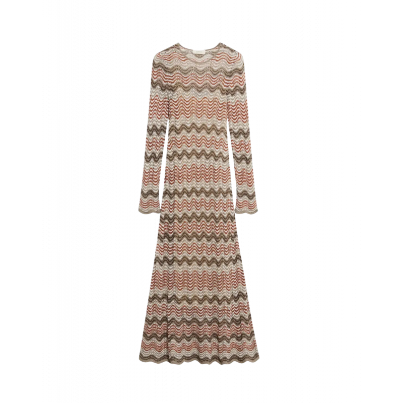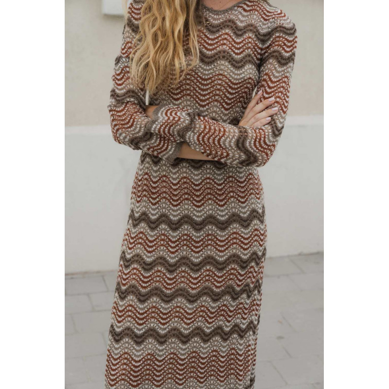 El vestido “Wonder” de eseOese ofrece un estilo voluptuoso y elegante gracias a su silueta evasé, manga larga y estampado de ondas en tonos marrones. Presenta escote caja y un forro de tirantes para mayor comodidad y ajuste. El largo aproximado para talla S es de 125 cm. Detalles del producto: * Diseño: ondas en tonos marrones * Escote: caja * Manga: larga * Forma: evasé * Forro: tirantes * Largo para talla S: 125 cm * Composición: 55 % poliacrílico, 35 % poliamida/nylon, 10 % lana * Marca: eseOese