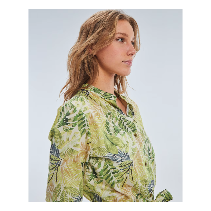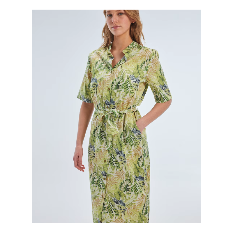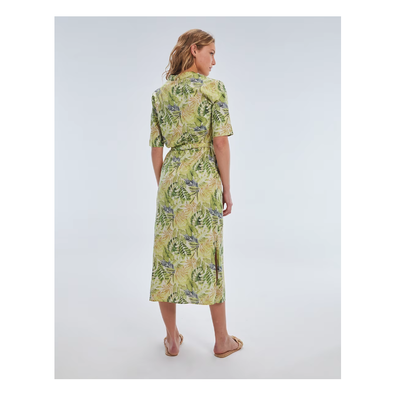 Vestido Largo Estampado Verde de Manga Corta y Cuello Mao PAZ TORRAS
