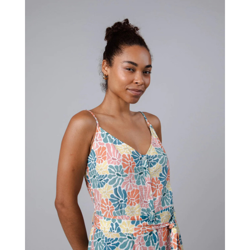 Detalles Brenda mide 1.69m y lleva una talla S 78% algodón orgánico 22% viscosa sostenible Confeccionado en talleres de Portugal Fabricado con materiales sostenibles Descripción Vestido largo de tirantes finos y corte recto con escote en pico. Presenta cierre de botones y cordón para ajustarlo. Confeccionada éticamente con algodón orgánico y viscosa sostenible. Instrucciones de lavado lavar a 30°c o menos no secar en secadora planchar a baja temperatura (máx. 110 °c)