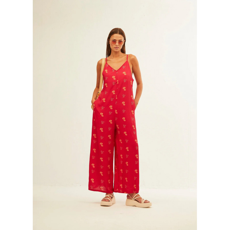 Mono largo en estampado Garnet Citrus. Escote en V con tirantes. Composición: Rayón 100%.