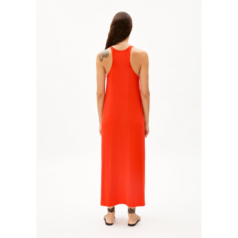 Vestido largo en color rojo, de cuello redondo y sin mangas. 96% VISCOSA (LENZING™ ECOVERO™) 4% ELASTANO