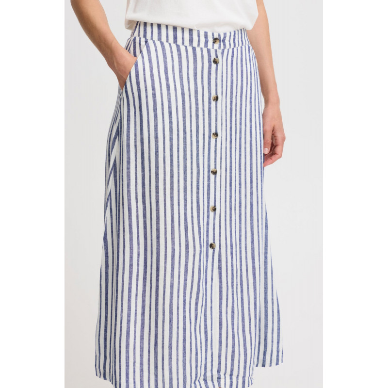 Descubre la elegante y versátil Falda Falakka Marshmallow Mix de B.Young. Con una suave composición de 55% lino y 45% viscosa, su ajuste regular de cintura media y caída sobre la pantorrilla es perfecta para cualquier ocasión. Su diseño de rayas añade un toque de estilo a cualquier atuendo.