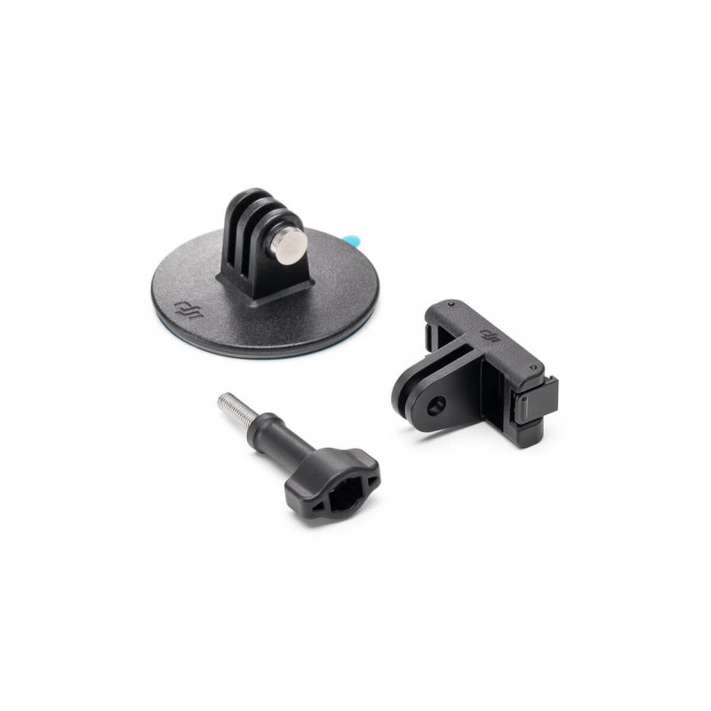 Contenido del embalaje Soporte adaptador de liberación rápida Osmo Action 3 × 1 Tornillo de fijación Osmo × 1 Base adhesiva plana Osmo × 1