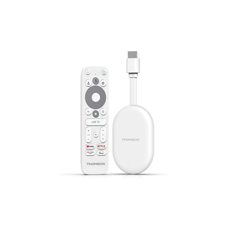 Entretenimiento inteligente simplificado. El Thomson 150 Go Cast lleva la experiencia completa de Google TV a cualquier televisor con puerto HDMI. Compacto, portátil y fácil de configurar, es la solución perfecta para convertir cualquier pantalla en un centro de streaming totalmente conectado, tanto en casa como en cualquier lugar. Transmite tu contenido favorito en impresionante 4K Ultra HD con colores intensos y detalles nítidos. Accede al instante a las mejores apps como Netflix, Disney+, Prime Video, YouTube, Spotify y muchas más. Olvídate de saltar de una app a otra: Google TV™ organiza todos tus servicios de streaming en una interfaz fluida y fácil de navegar, mostrando tus favoritos. El control remoto incluido está diseñado para mayor comodidad y rapidez, y es compatible con el Asistente de voz de Google. Simplemente di lo que buscas, desde los clips más populares de YouTube hasta el último éxito de taquilla, y deja que el Dongle se encargue del resto. Los botones de acceso directo ofrecen acceso rápido a tus apps más usadas. El entretenimiento personalizado está a un solo clic: configura varios perfiles de usuario para obtener recomendaciones personalizadas para todos en casa. Y con Google Cast integrado, puedes duplicar o transmitir contenido desde tu smartphone directamente a la pantalla de tu televisor, sin esfuerzo. Thomson 150 Go Cast: el sustituto perfecto para Google Chromecast.