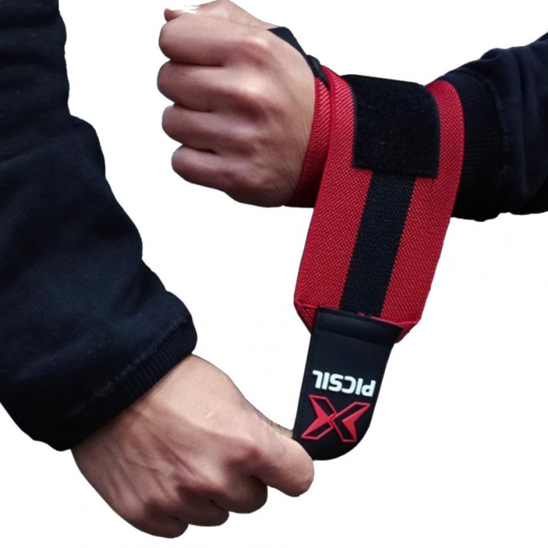 Estas muñequeras Picsil te dan la máxima sujeción sin limitar el movimiento gracias al algodón elástico. Así podrás hacer un press pesado, y, sin quitártelas, podrás hacer flexiones o cualquier otro ejercicio.   Detalles: * Tejido de algodón de alta resistencia. * Cierre de Velcro. * Talla única | 37 cm x 7,5 cm.