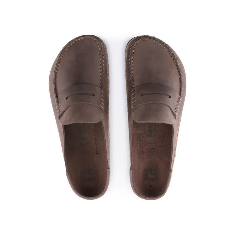 El modelo Naples Wrapped de BIRKENSTOCK es la versión cerrada del popular zueco Buckley. El estilo mocasín con su llamativa costura aporta a la sandalia un marcado look masculino. Gracias a sus dos componentes, la suela garantiza una posición segura y cómoda. Se compone de entresuela amortiguadora fabricada en EVA y suela de goma auténtica. El material superior es de piel de nobuk muy gruesa y engrasada, confeccionada sin costuras en los bordes. * Plantilla anatómica de corcho y látex * Material superior: piel de nobuk engrasada * Capa superior de la plantilla: ante * Suela: suela de goma EVA * Detalles: estilo mocasín con llamativa costura * Plantilla «Made in Germany» Material superior: Piel engrasada La piel engrasada es uno de nuestros tipos de piel preferidos. Con su superficie engrasada o encerada se genera un efecto de color único y una bonita pátina. Debido al acabado engrasado de nuestros productos de piel natural, el color puede presentar variaciones, por lo que cada par es único. Suela interna: Capa superior de la plantilla de piel Revestimiento de piel, flexible e inocuo para la piel, que acoge el pie adoptando su forma y plegándose a su perfil. La superficie del revestimiento tiene estructura alveolar, lo que la hace especialmente transpirable, y de este modo hace posible un agradable ambiente en el interior del calzado incluso con actividad física intensa. Material de la base interior: Corcho El corcho es una materia prima regenerable que se extrae de la corteza del alcornoque. Es un producto natural aislante del calor y cuenta con excelentes propiedades de amortiguación. Suela de contacto: Dos componentes Nuestra suela de dos componentes aúna la liviandad y flexibilidad del EVA (etilvinilacetato) con la elasticidad y resistencia al desgaste de la goma.