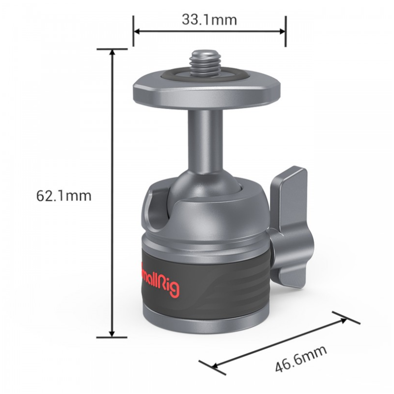 Le support à rotule SmallRig 2796 est conçu pour accueillir les petites caméras DSLR, sans miroir et d'action ou d'autres accessoires pesant jusqu'à 7,7 livres.