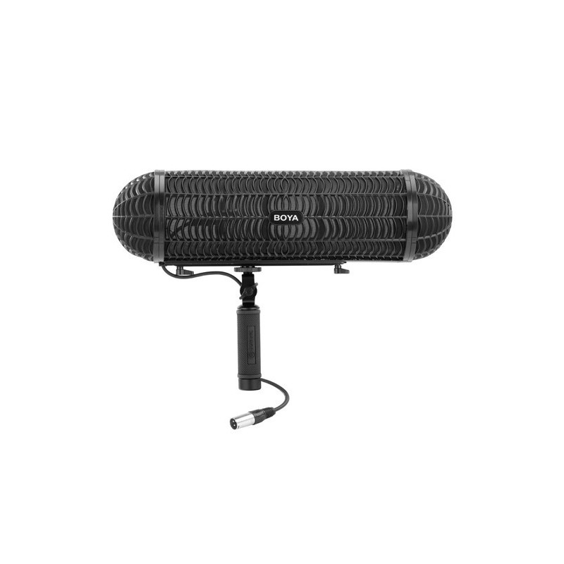Le BY-WS1000 est une bonnette anti-vent professionnelle et un système de suspension conçu pour une utilisation en extérieur afin d'éviter le bruit du vent et les chocs, bien qu'il soit également disponible pour une utilisation en intérieur en tant que support de choc pour microphone. Grâce à sa fabrication parfaite et à sa structure interne, elle convient à la plupart des microphones canon de chasse d'une longueur de 320 mm et d'un diamètre de 20 à 22 mm. C'est un outil utile pour capter le son dans les vidéos commerciales, les programmes ou la production de films, etc.