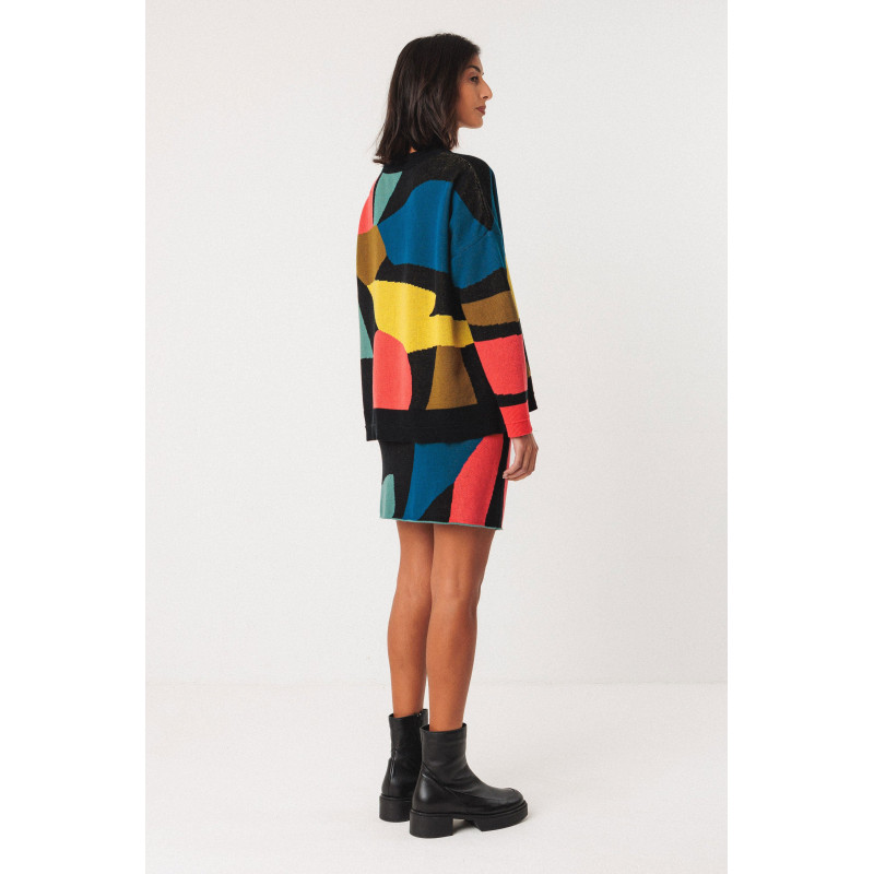 Suéter de punto jacquard semigrueso. Es de manga larga, tiene el cuello redondo y lleva remates de canalé en el cuello, la cintura y los puños. 100% ALGODÓN ORGANICO
