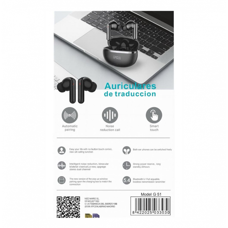 Los IPSDI IP9010 Blanco son auriculares inalámbricos con traducción en tiempo real para más de 150 idiomas mediante aplicación móvil. Incorporan Bluetooth 5.4, IA de reducción de ruido y diseño ergonómico in-ear en acabado blanco elegante. Ofrecen sonido claro, conexión estable y control táctil inteligente. Hasta 6 h de uso por carga y 18 h con estuche, ideales para viajes, reuniones o aprendizaje de idiomas.