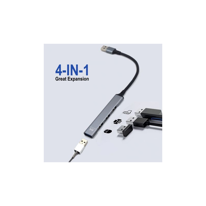 Hub EWENT Slim EW1144 USB 3.2 con 4 PUERTOS(3 USB 2.0 y 1 USB 3.2)